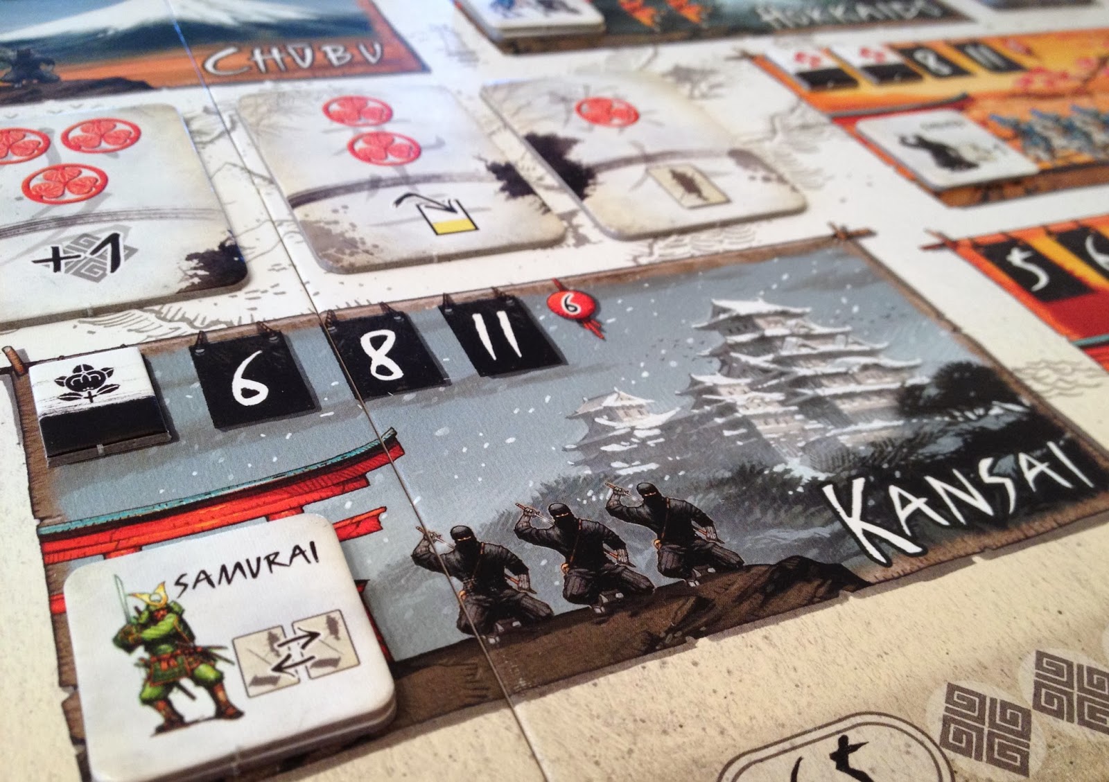 Next, everyone uses their troops and Koku to gain influence. They may play in up to two areas, with the turn